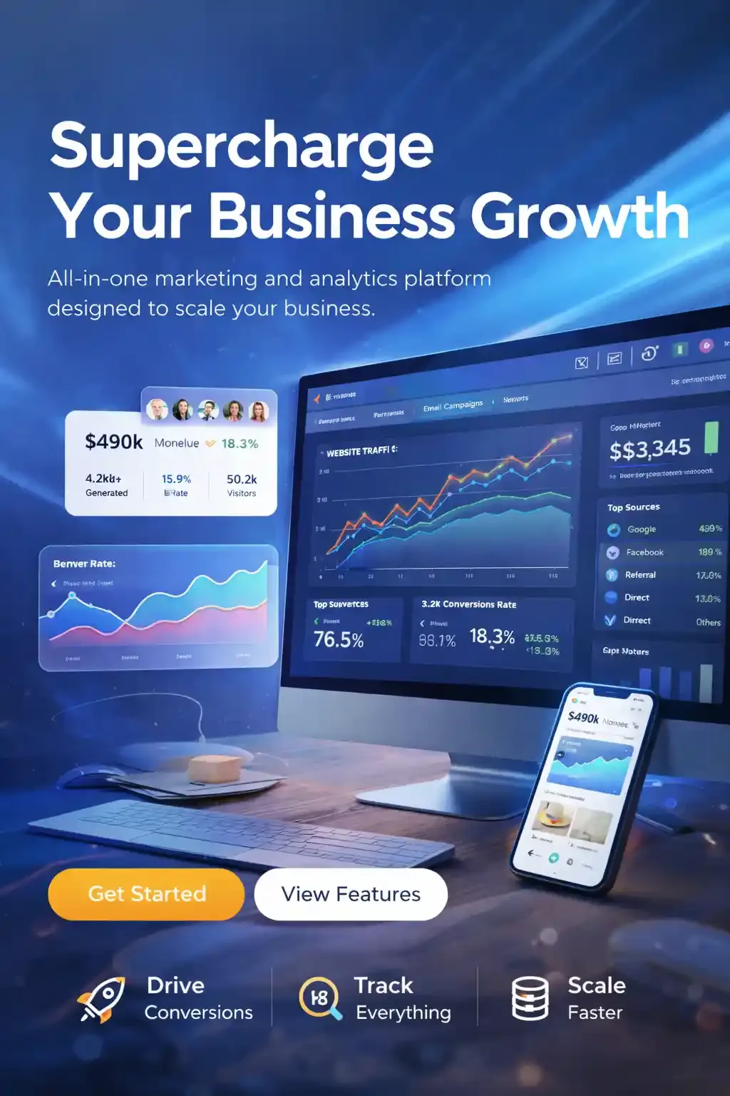 Structured layouts focused on measurable actions, lead flow, and ROI.