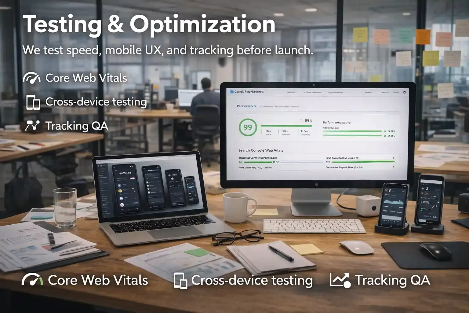 We test speed, mobile UX, and tracking before launch.